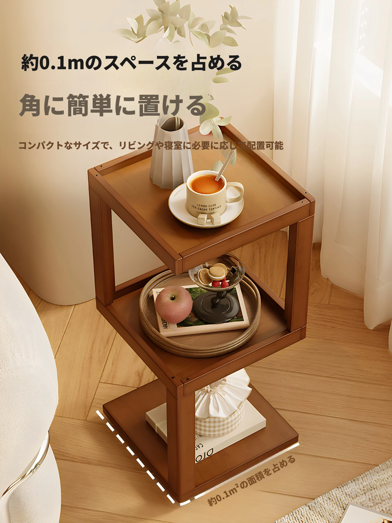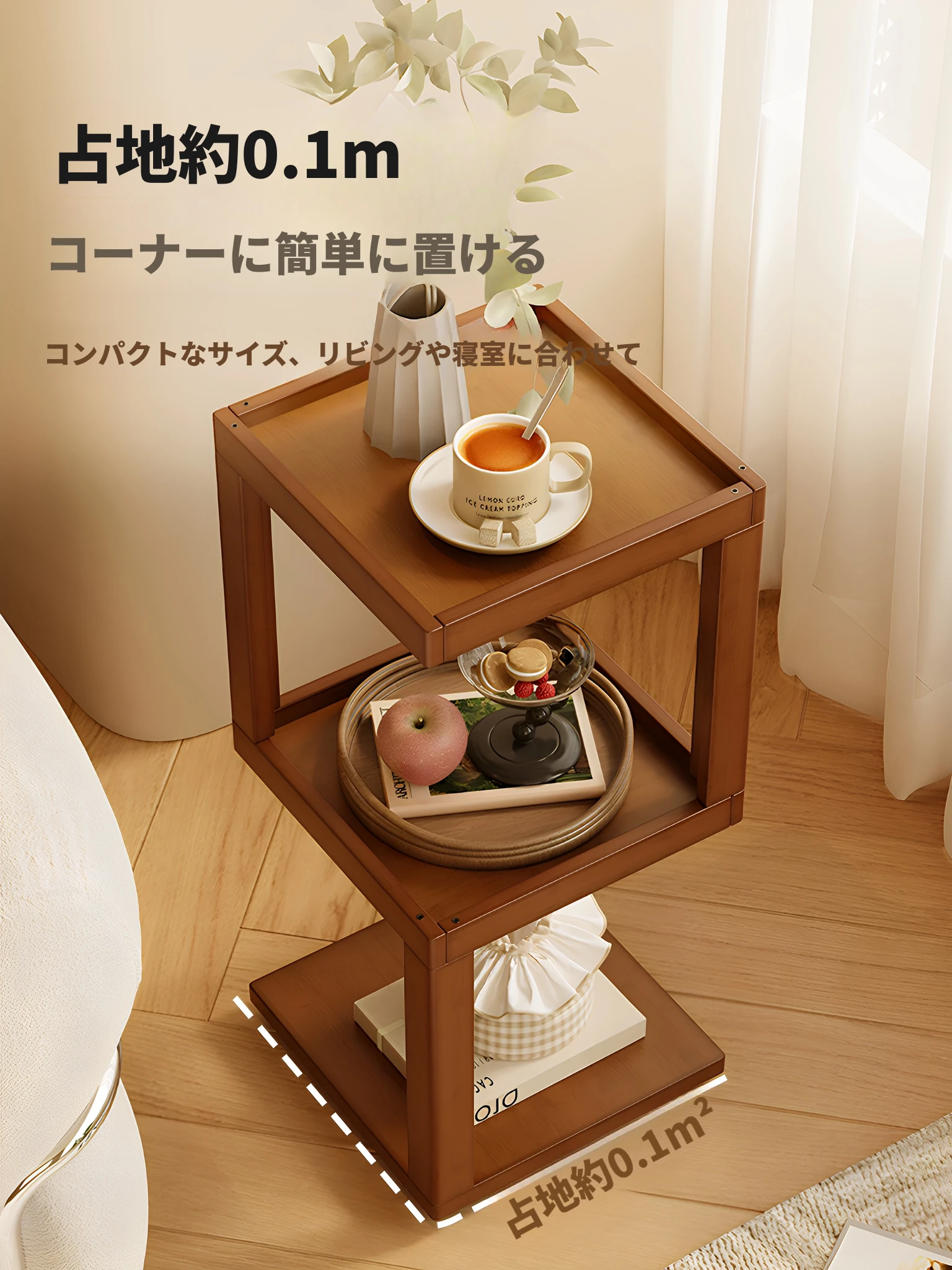 クリエイティブなミニマリストデザインのリビング用サイドテーブル|省スペースでおしゃれな回転式コーヒーテーブル|ソファ横にぴったりな収納テーブル!お部屋をスッキリ魅せるアイテムです。