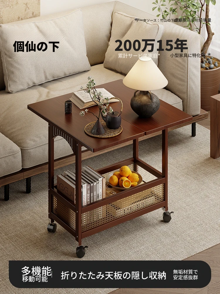 移動式のティーテーブル|リビング・バルコニーに最適な天然木製の茶卓|ソファ横の収納スペースとしても使える小型サイドテーブル