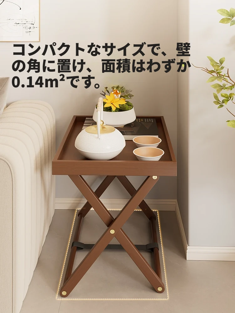 折りたたみ式ミニ茶卓 - 小型バルコニーやリビングに最適なコンパクトデザイン!家族や友人とのティータイムを楽しむための便利な一体型ティートレイ付き。創造的な低テーブルで、おしゃれな空間を演出!