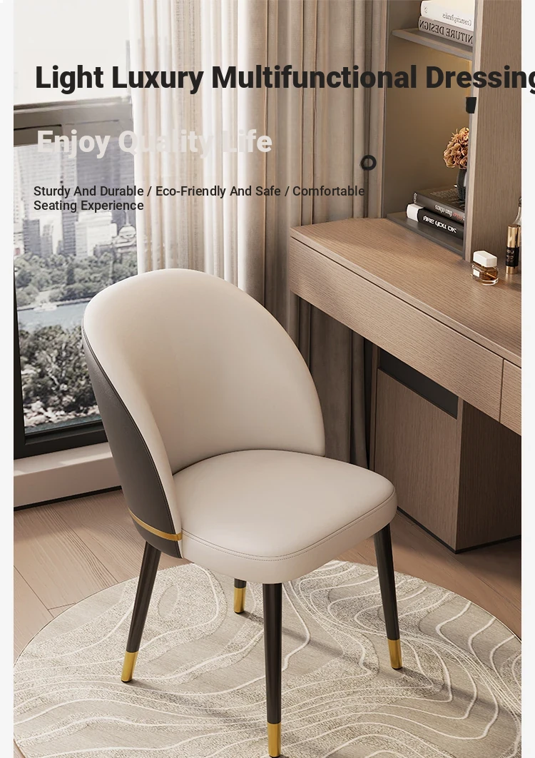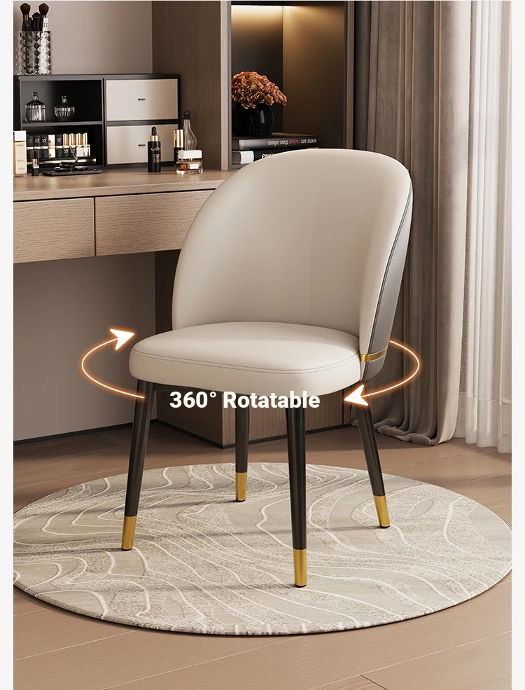 Elegant Makeup Stool for Women - Luxurious Italian-Style Vanity Chair with Backrest, Rotatable Design Perfect for Bedrooms and Dressing Rooms, High-End Feel for Your Beauty Routine.