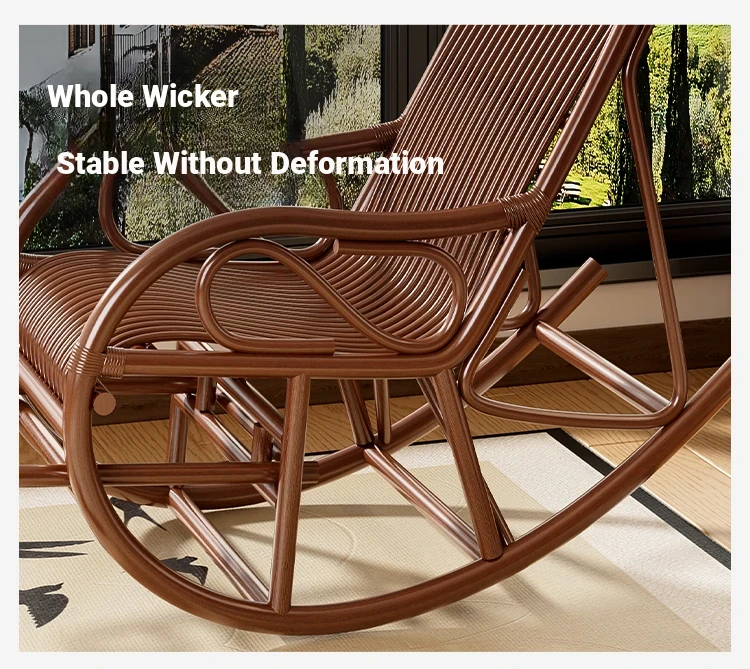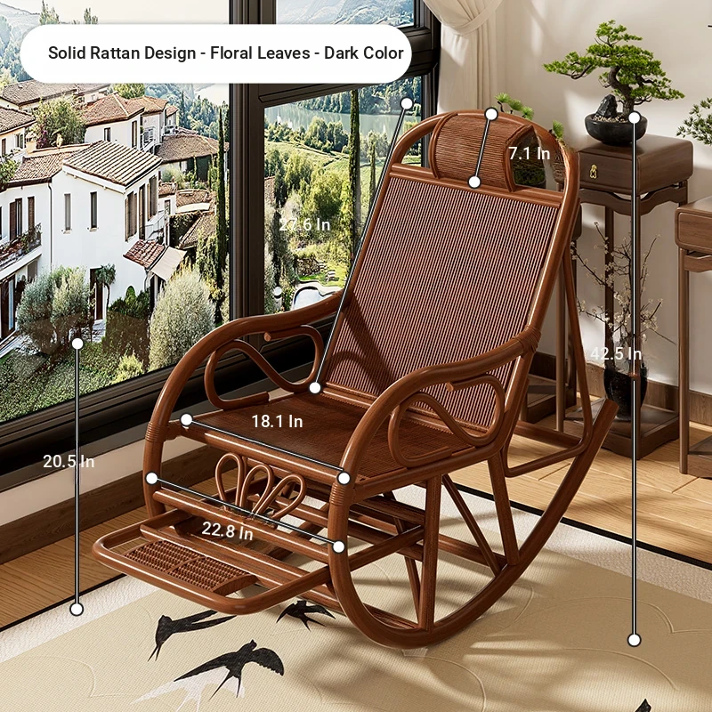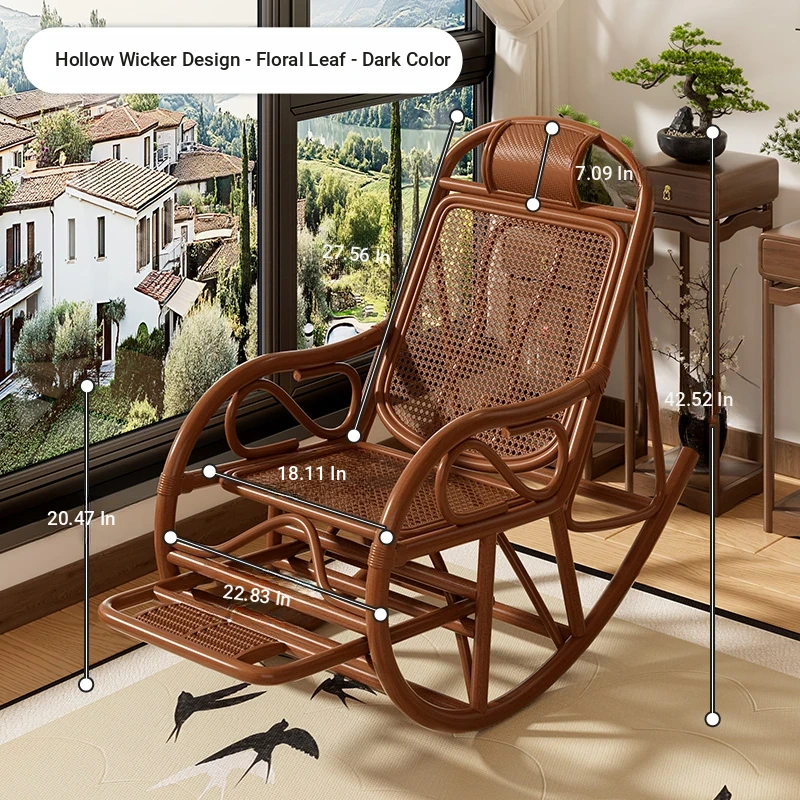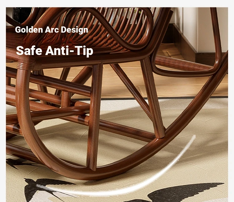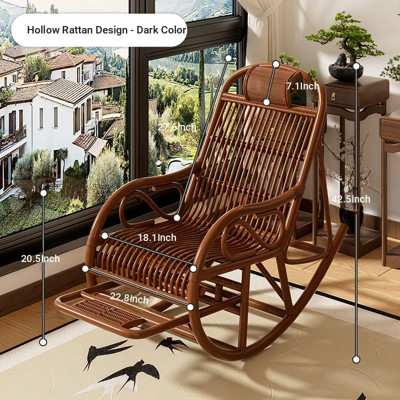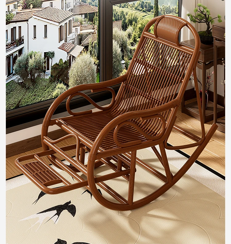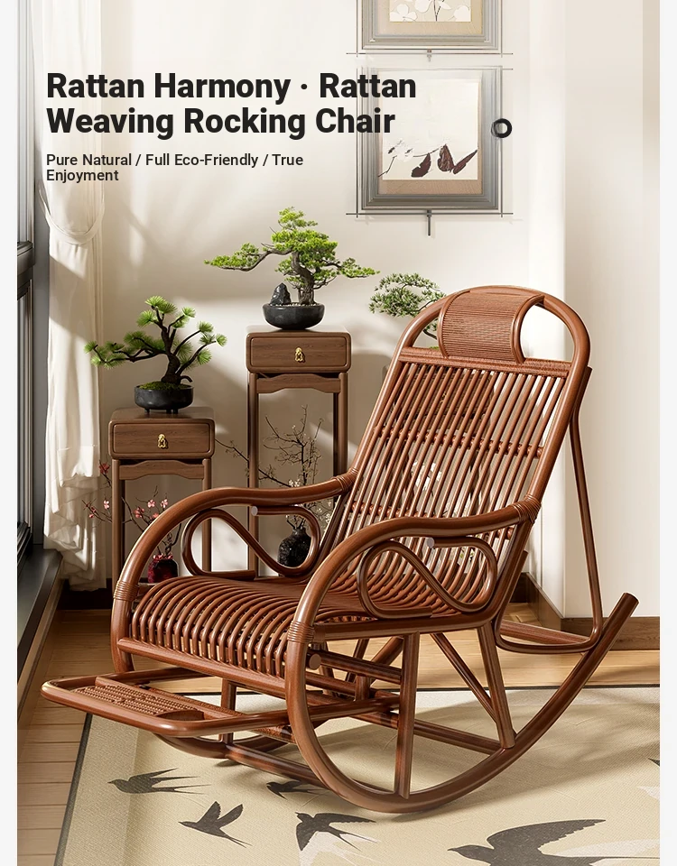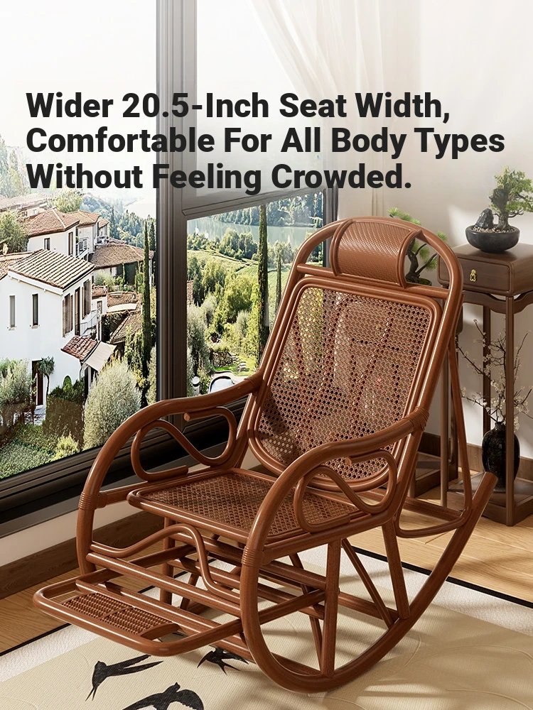Natural Rattan Wood Chair – Comfortable Long Sitting, Ergonomic Backrest, Perfect for Balcony Use, Relaxing Rocking Chair, Ideal Lounge Chair for Adults and Seniors, Great for Napping at Home