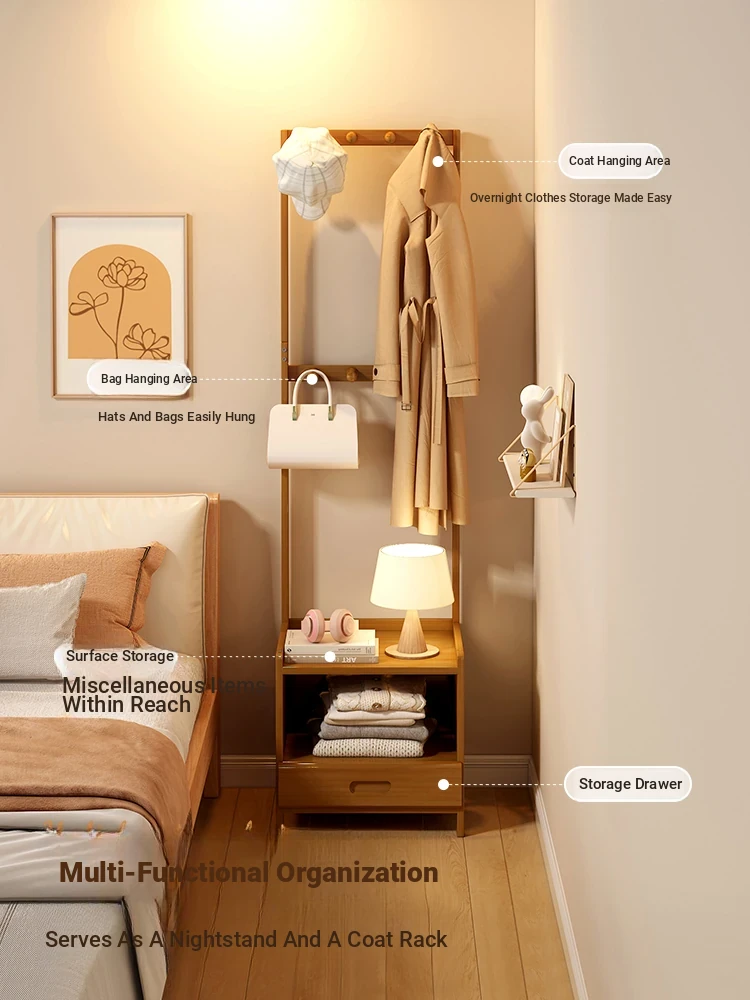 Multifunctional Bedside Nightstand with Clothes Rack - Compact Storage Solution for Bedroom, Perfect for Keeping Your Clothes Organized at Night