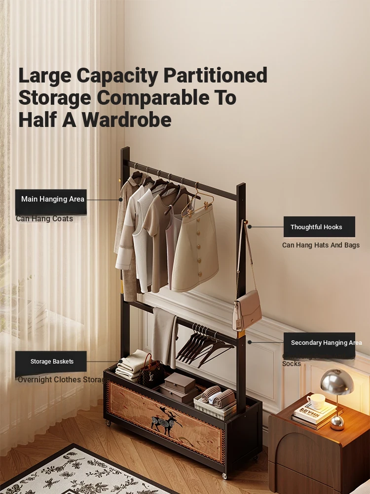Vintage-Style Movable Coat Rack - Floor Standing Clothes Hanger, Ideal for Bedroom Use, Perfect for Nighttime Clothing Storage and Easy Access by Bedside.