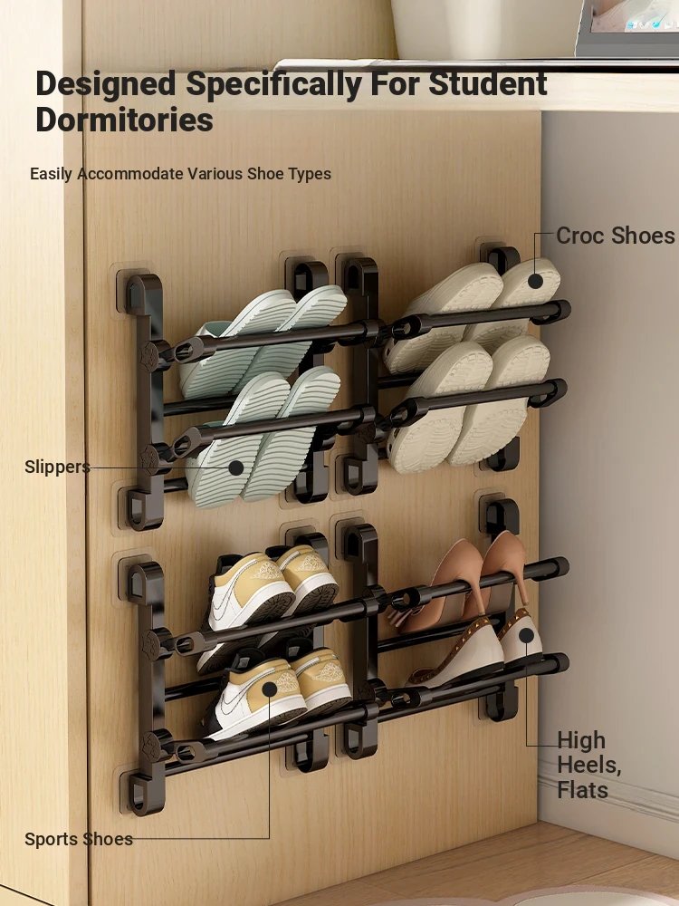 Space-Saving Wall-Mounted Shoe Rack for Dorm Rooms - No Drill Needed! Foldable Storage Shelf for Bathroom Doors & Under Desks - Perfect for College Students