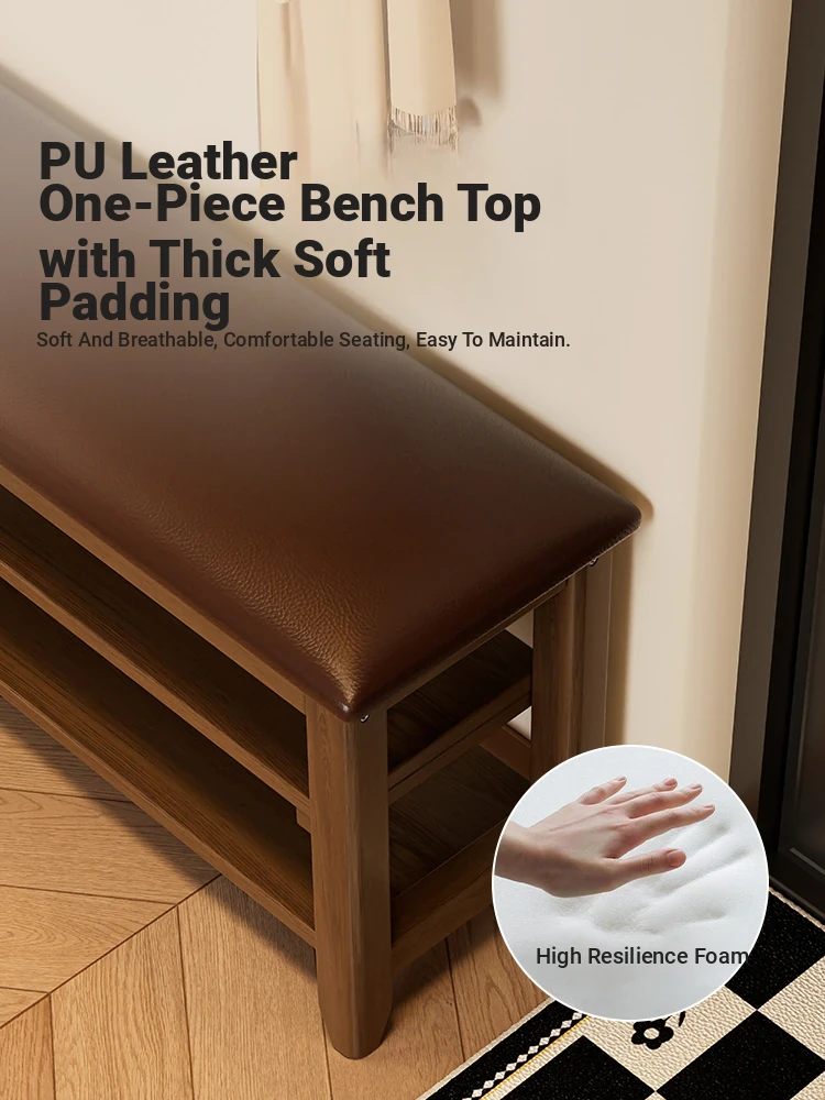 Luxury Soft-Cushioned Entryway Shoe Bench with Solid Wood Storage - Stylish and Functional Seating for Easy Shoe Changing and Organizing