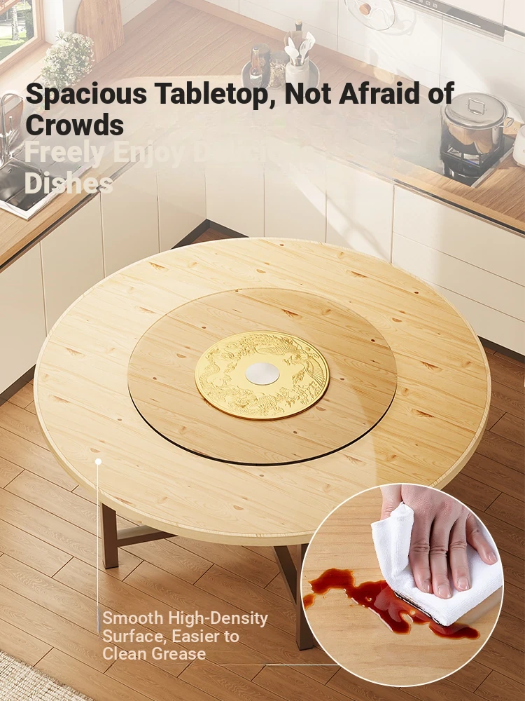 Foldable Solid Wood Large Round Dining Table for 12-15 People - Perfect for Home and Restaurants, Featuring a Lazy Susan for Convenient Serving