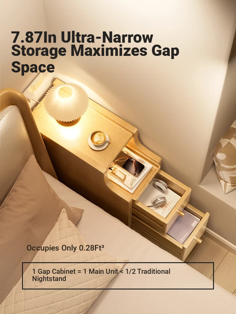 Sleek Narrow Bedside Cabinet for Home Bedroom – Luxurious Mini Storage Solution, Creative 20cm Gap Organizer for Stylish Spaces