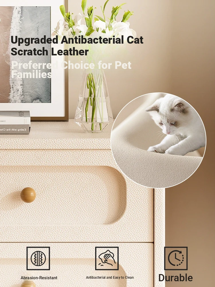 Modern Cream Wooden Bedside Table - Minimalist Style Nightstand for Bedroom Storage - 2025 Trending Creative Small Night Stand