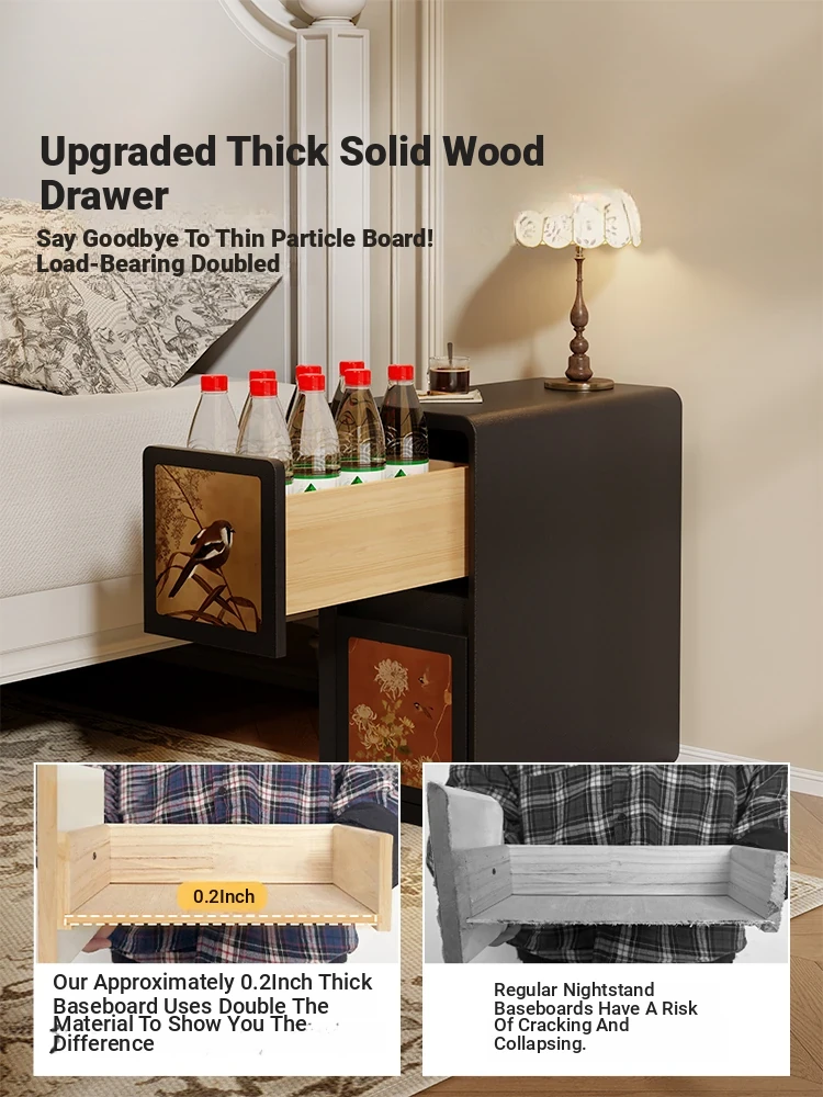 2025 New Minimalist Cream-Style Solid Wood Nightstand - No Installation Required, Compact Design for Home Bedrooms, Perfect Storage Solution for Modern Living