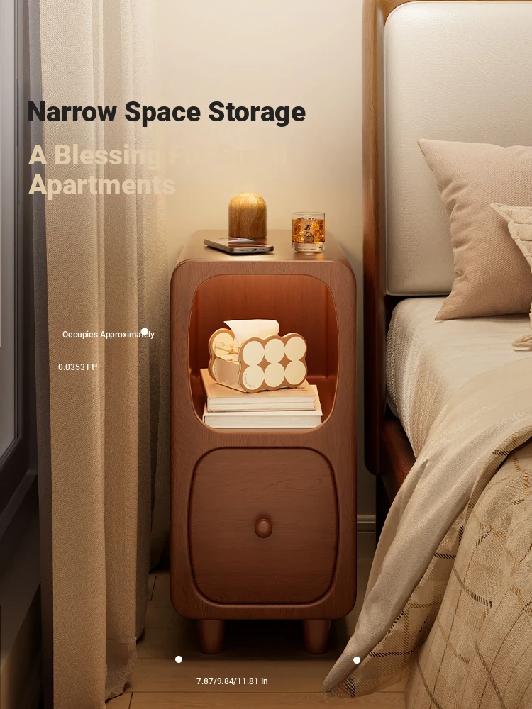 Mini Solid Wood Bedside Table - Compact Natural Wood Storage Cabinet for Home Bedroom, Perfect 20cm Slim Fit Organizer for Tight Spaces