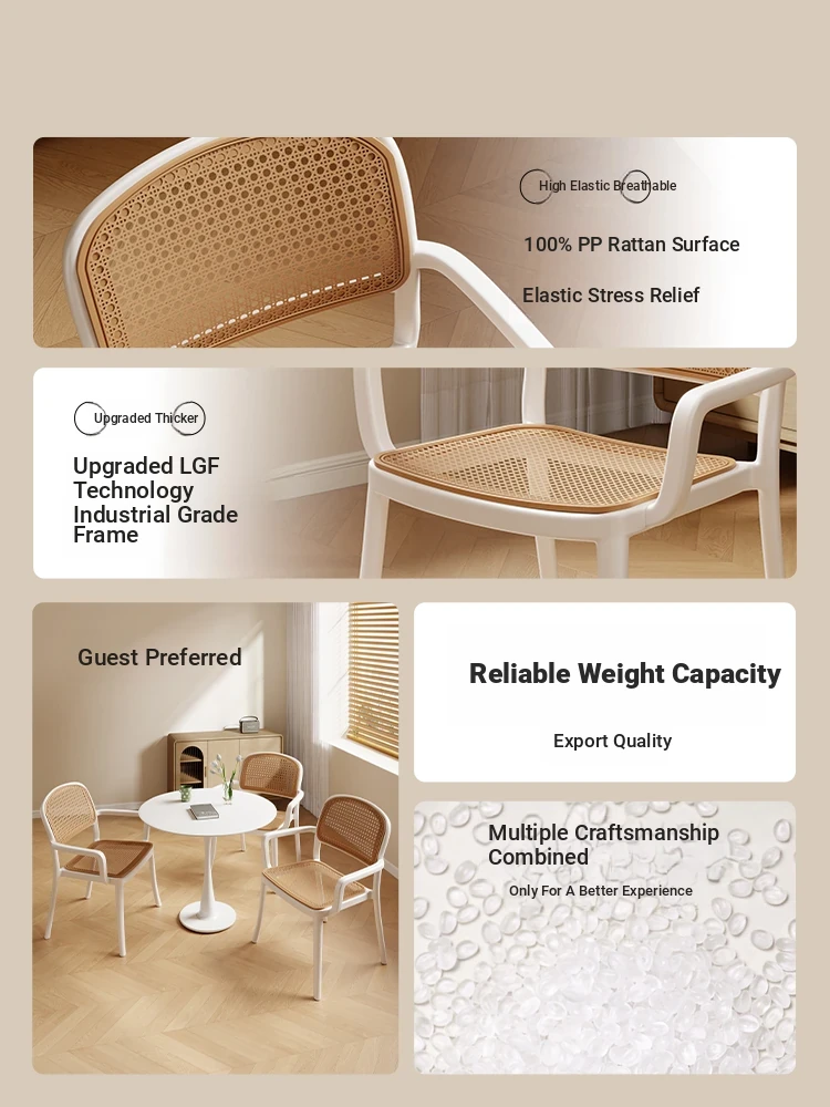 Rattan Dining Chair for Home - Elegant Plastic Armchair for Tea Time, Breathable Backrest, Perfect for Balcony and Dining Spaces, Adding a Touch of Luxury to Your Decor.