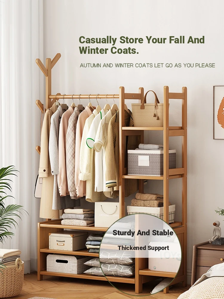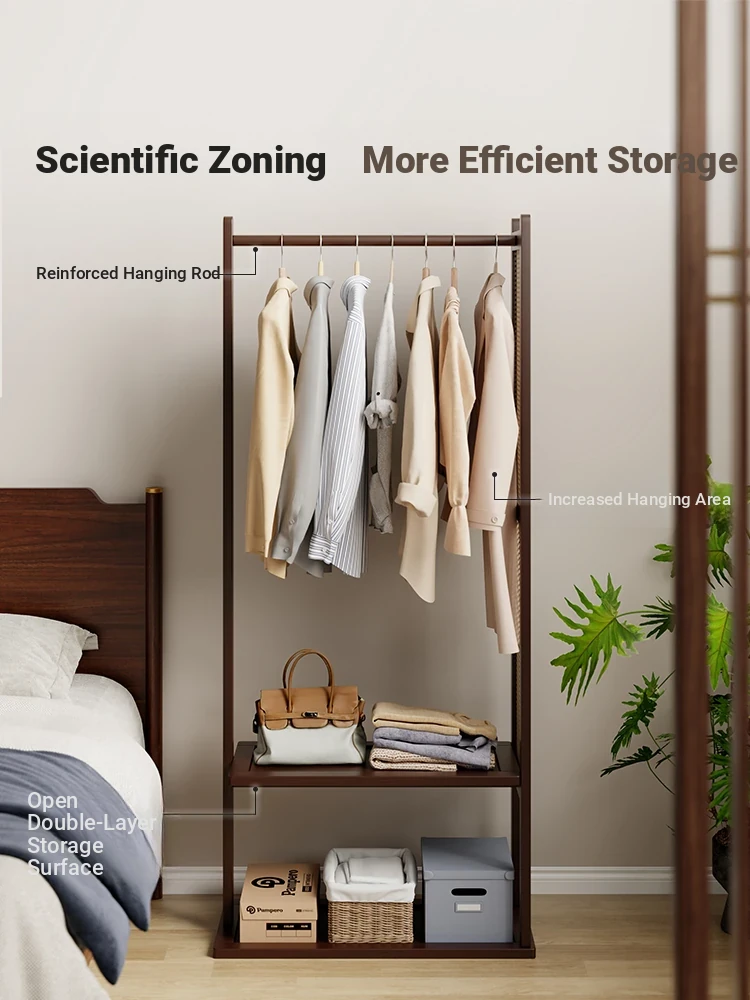 2025 New Wooden Floor Coat Rack - Space-Saving Clothes Organizer for Bedroom and Home, Stylish and Functional Design