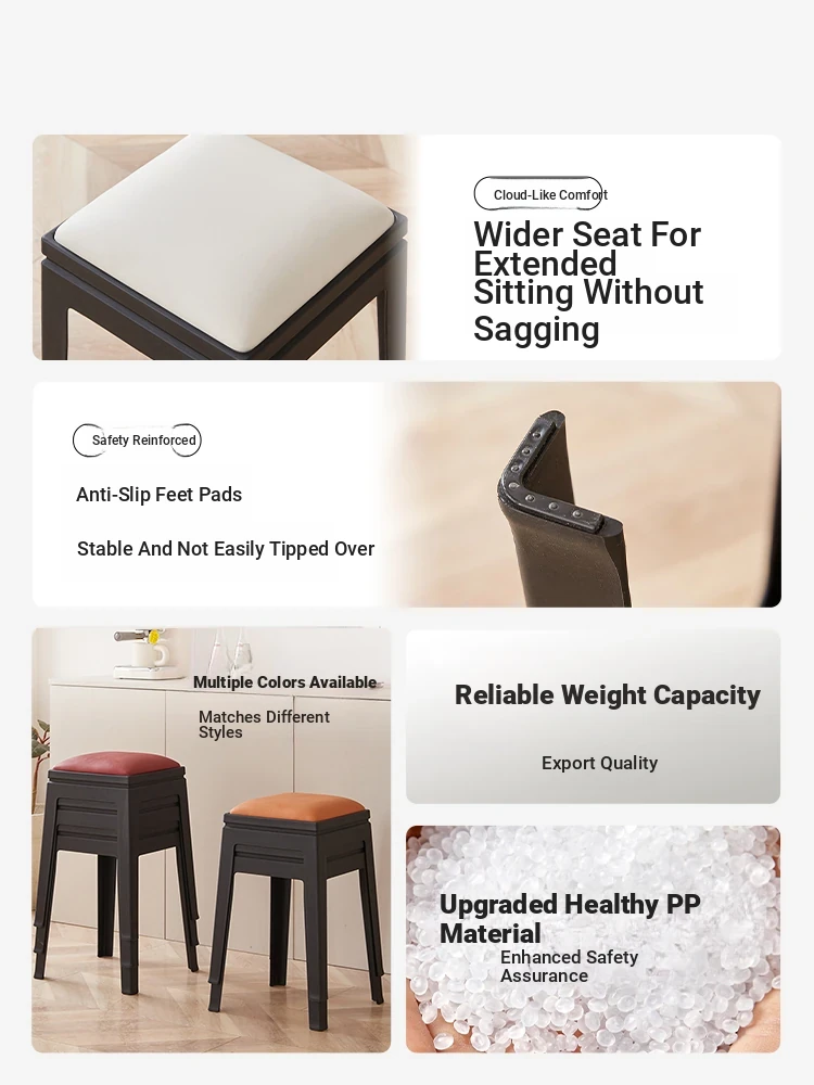 Durable and Stylish Plastic Stools for Home Use - Premium Quality, Stackable, Thickened Soft Cushion for Guest Seating, Ideal for Any Occasion