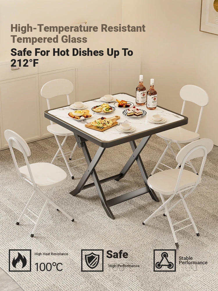 Compact Folding Dining Table - Portable Stainless Steel Small Square Table for Home, Ideal for Small Apartments and Outdoor Use, Perfect for Meals and Pop-Up Stands.