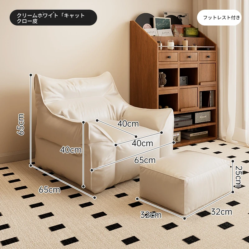 猫爪皮-クリームホワイト+フットレスト【環境に優しいEPP粒子 長時間座っても快適】