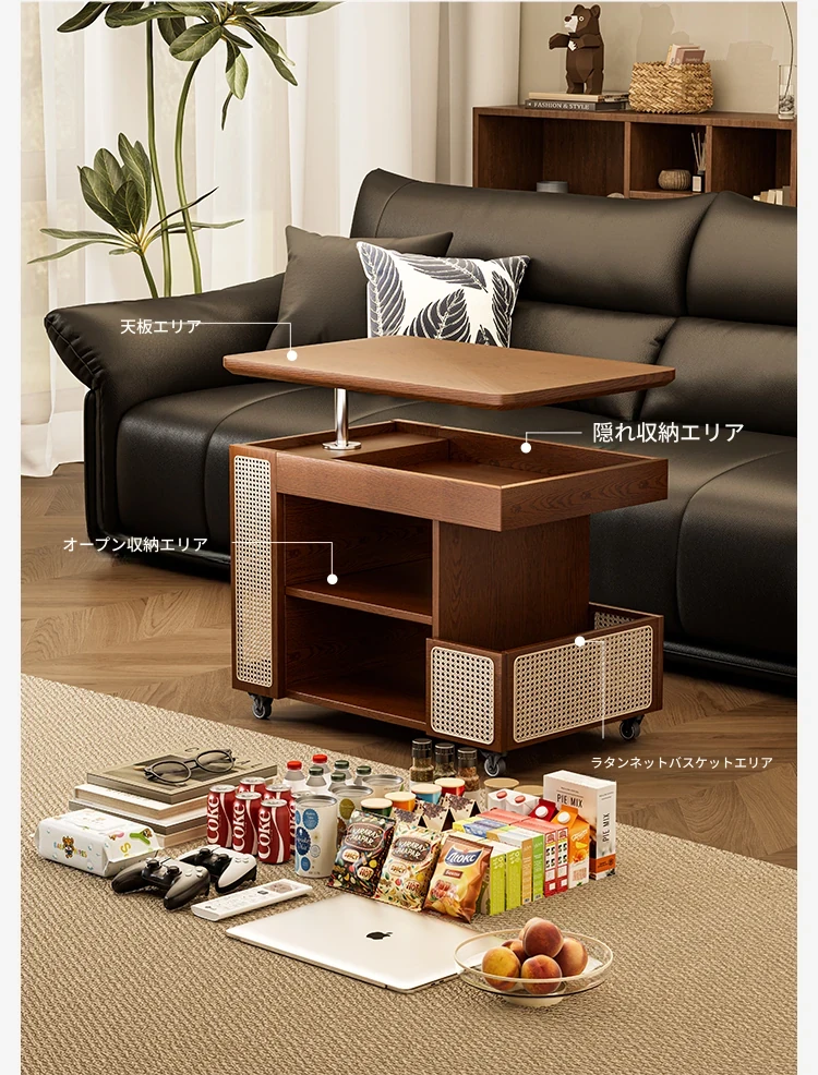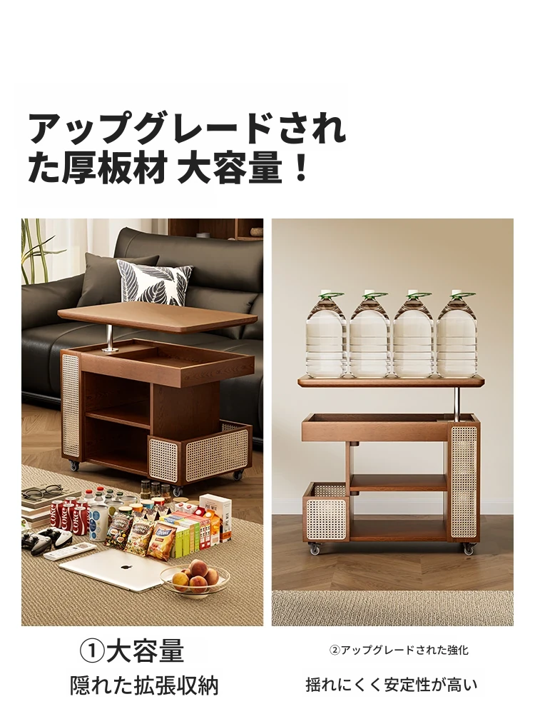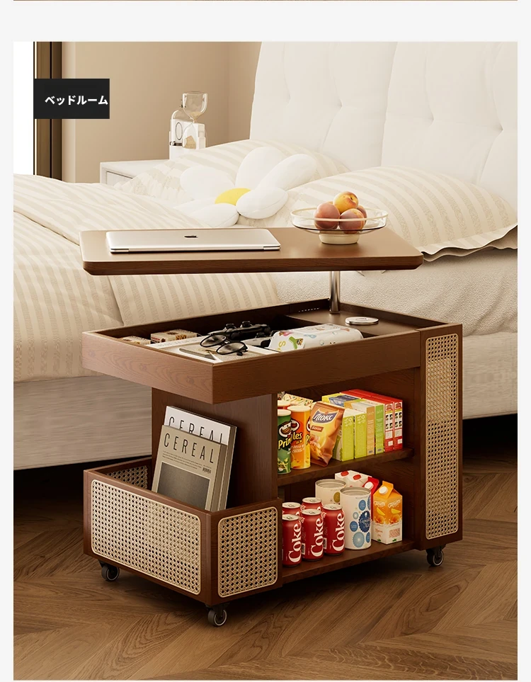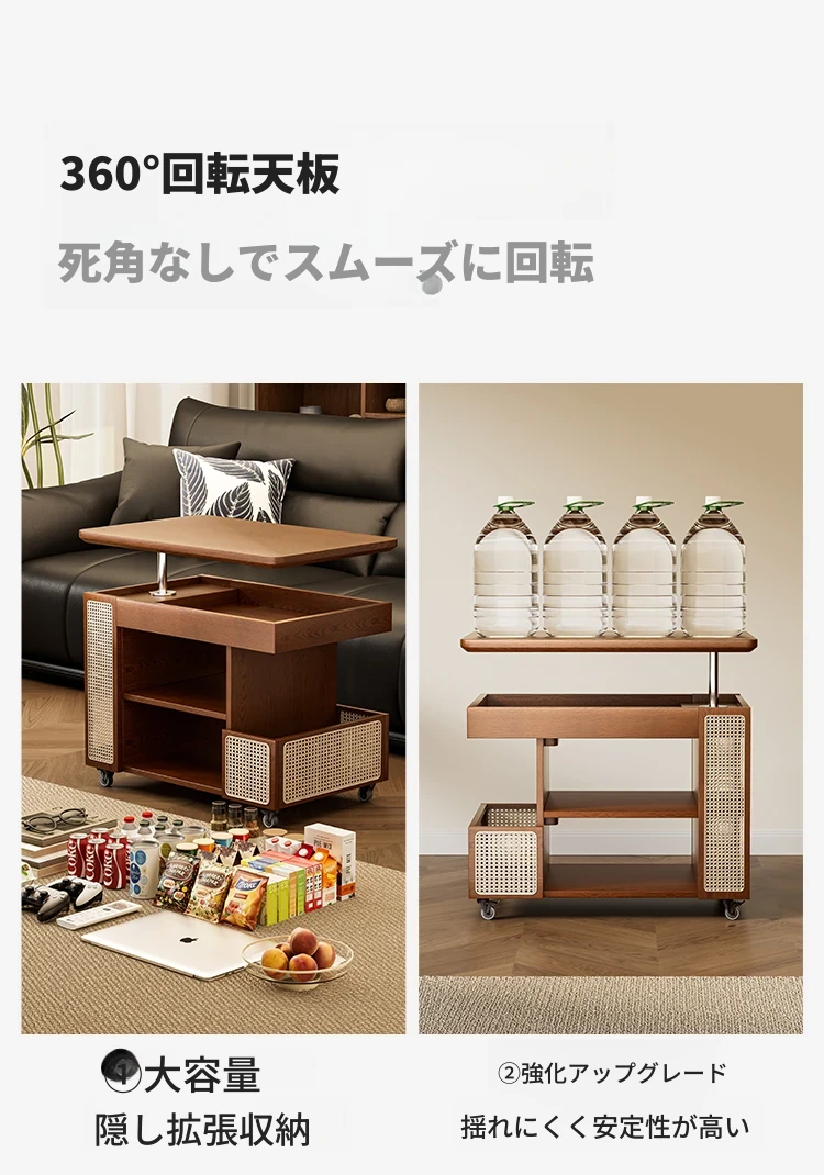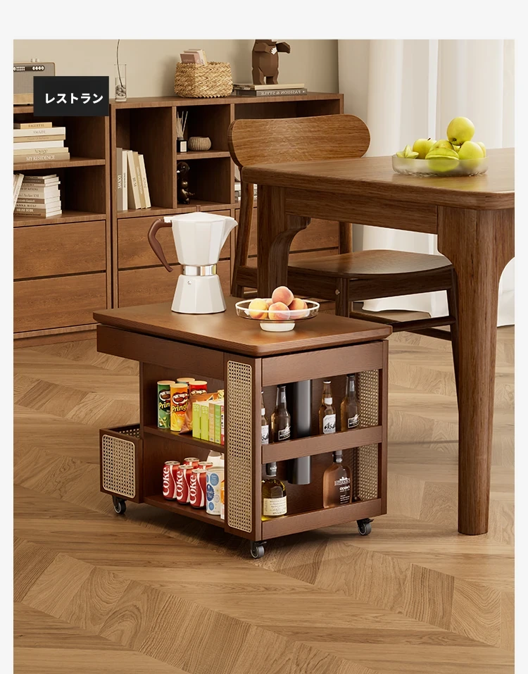 中古の小型カート、テーブル付きの移動式収納ラック!リビングにぴったりな木製のスナックテーブル&サイドテーブル。おしゃれで便利、あなたの生活空間を引き立てます!
