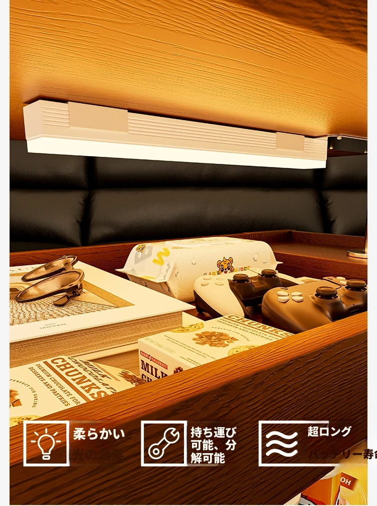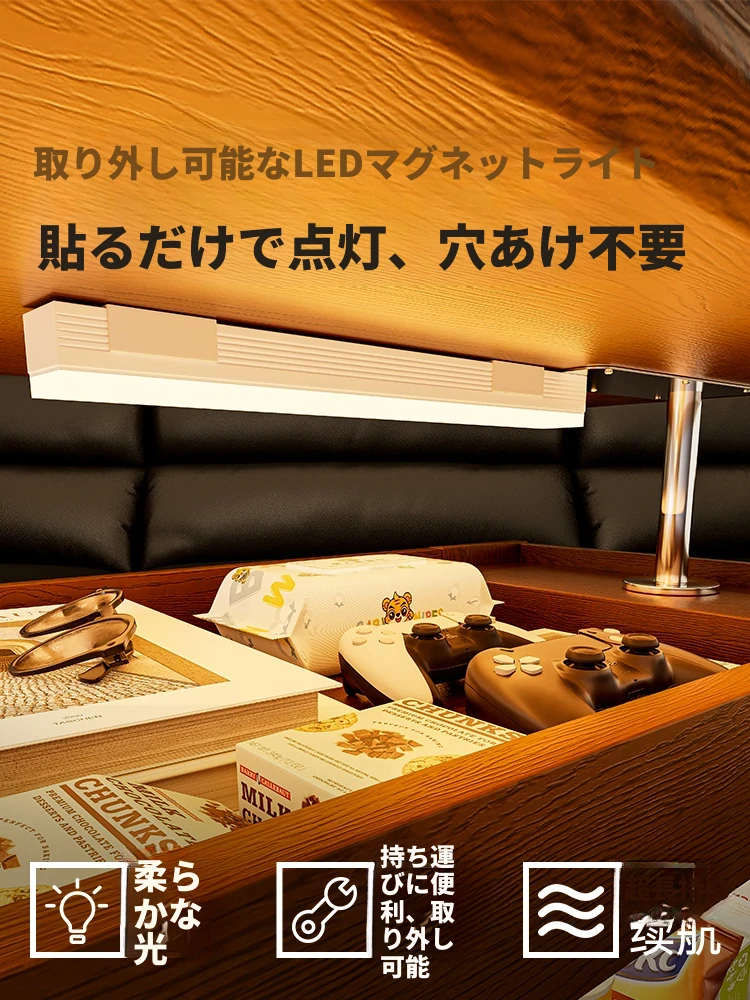 ウォールナット色昇降回転サイドテーブル+LEDマグネットライト【組み立て済み発送】【プッシュ昇降】