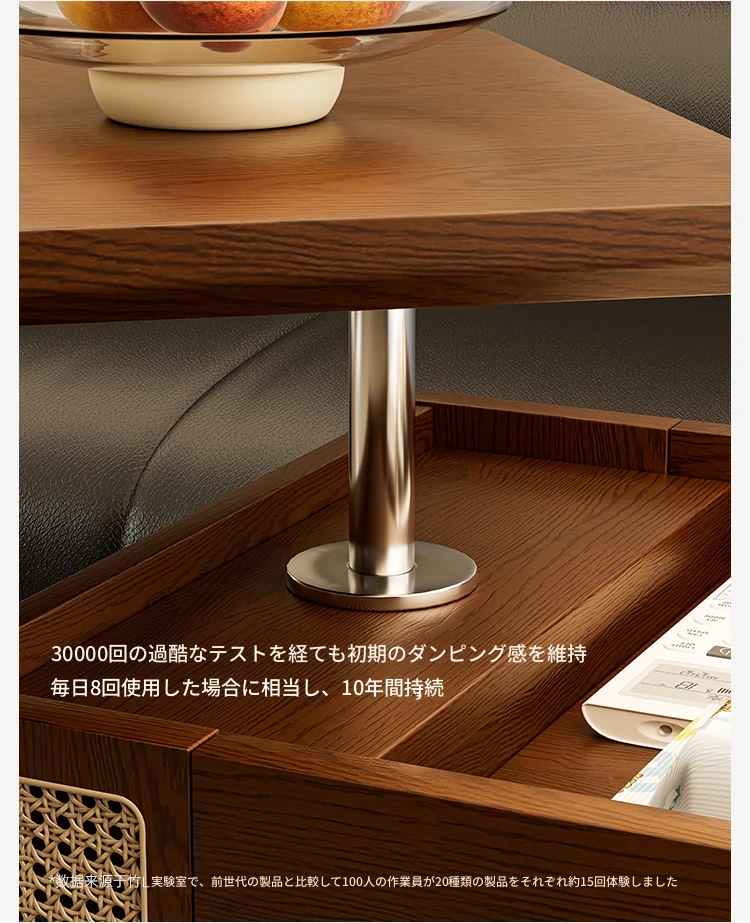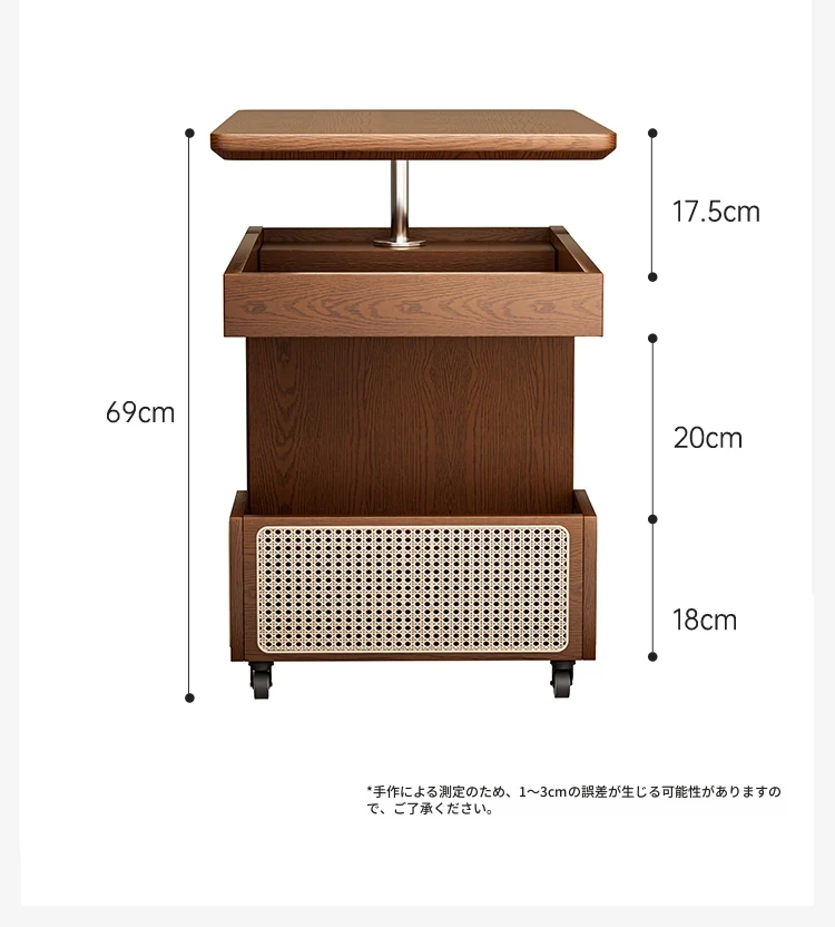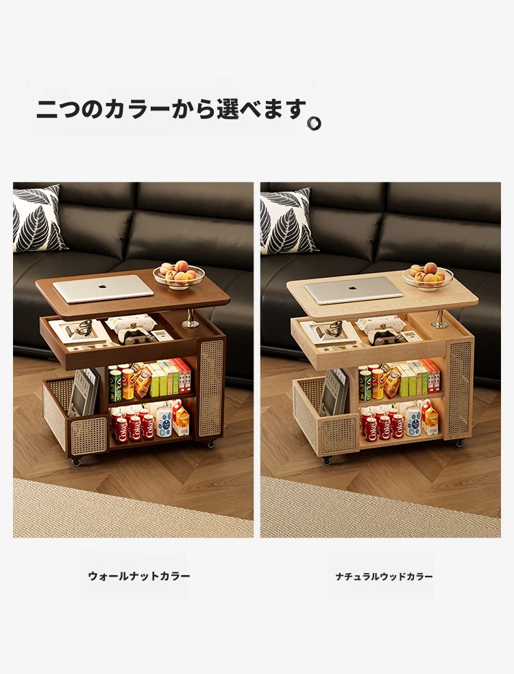 主图款⭐ウォールナット色昇降回転サイドテーブル【組み立て済み発送】【プッシュ昇降】