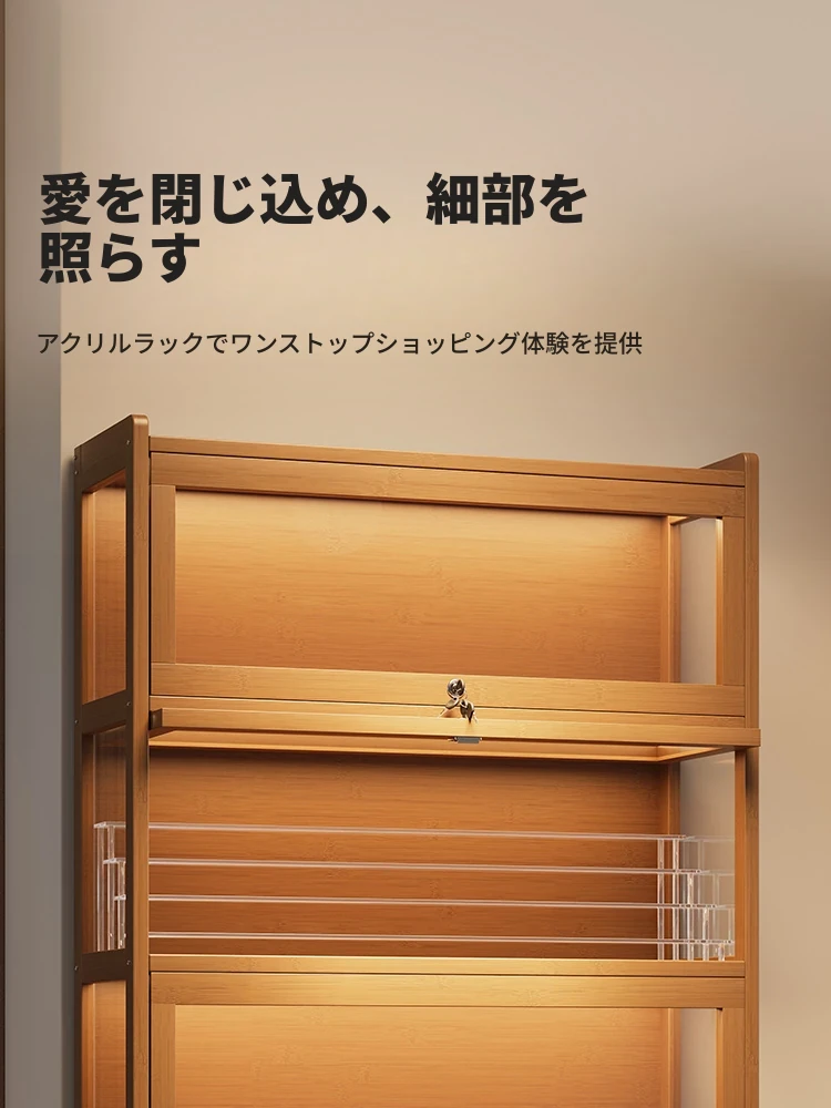 痛バンプレ展示キャビネットアクリルガラス製透明ブロックスタンドライト付きおもちゃ子供用バッグディスプレイキャビネット!おしゃれなデザインで、あなたのコレクションを美しく飾ります。