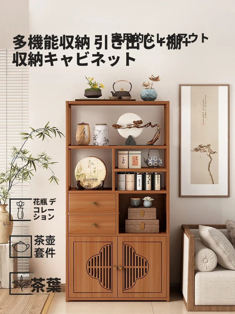 実木中式茶棚 - おしゃれな茶器ディスプレイラック、コンパクトな多宝阁!お茶の魅力を引き立てる、お部屋のインテリアに最適な収納家具。茶葉や茶具を美しく飾り、心地よいティータイムを演出します。