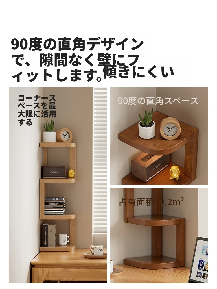 コーナーベッドサイドキャビネット|天然木製収納ラック|ベッドサイドの代替品|書棚としても使える|家庭用オーク製テーブルトップシェルフ|スタイリッシュな収納でお部屋をスッキリ!