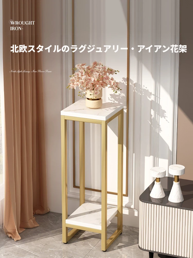 2024年新作!スタイリッシュなリビング用フロアスタンド型バルコニー収納ラック - 軽やかなアイアン製の花鉢トレイ&ディスプレイスタンド。おしゃれなインテリアに最適!