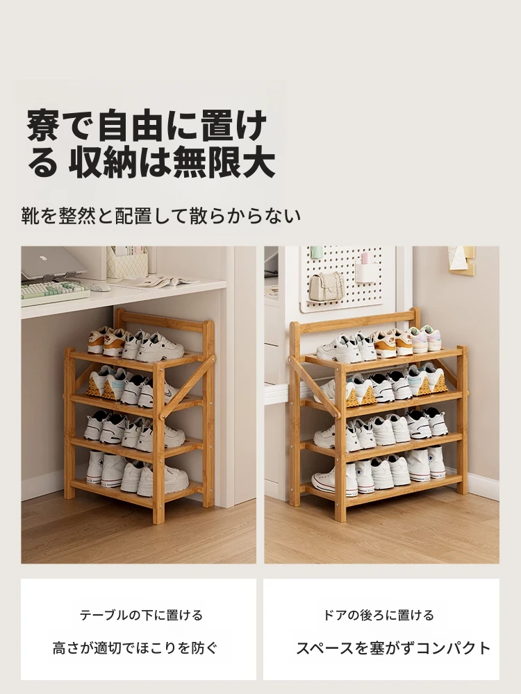 取り付け不要!学生寮にもぴったりな折りたたみシューズラック。デスク下に収まるコンパクト設計で、簡単に多層収納が可能。省スペースで室内をスッキリ整理整頓!
