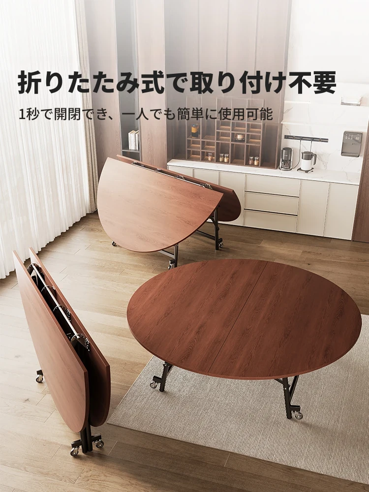 2025年新型折りたたみ式円形ダイニングテーブル - 大型回転式テーブルで10人まで対応!家庭に最適な省スペースデザインで、食事も楽しく快適に。