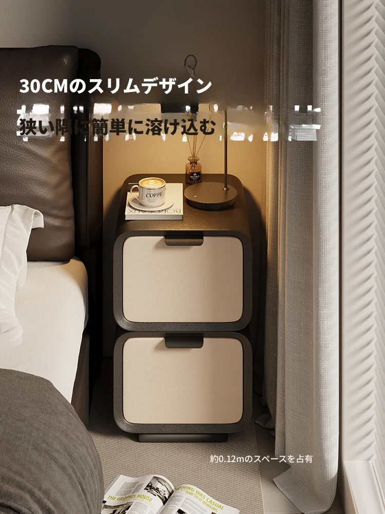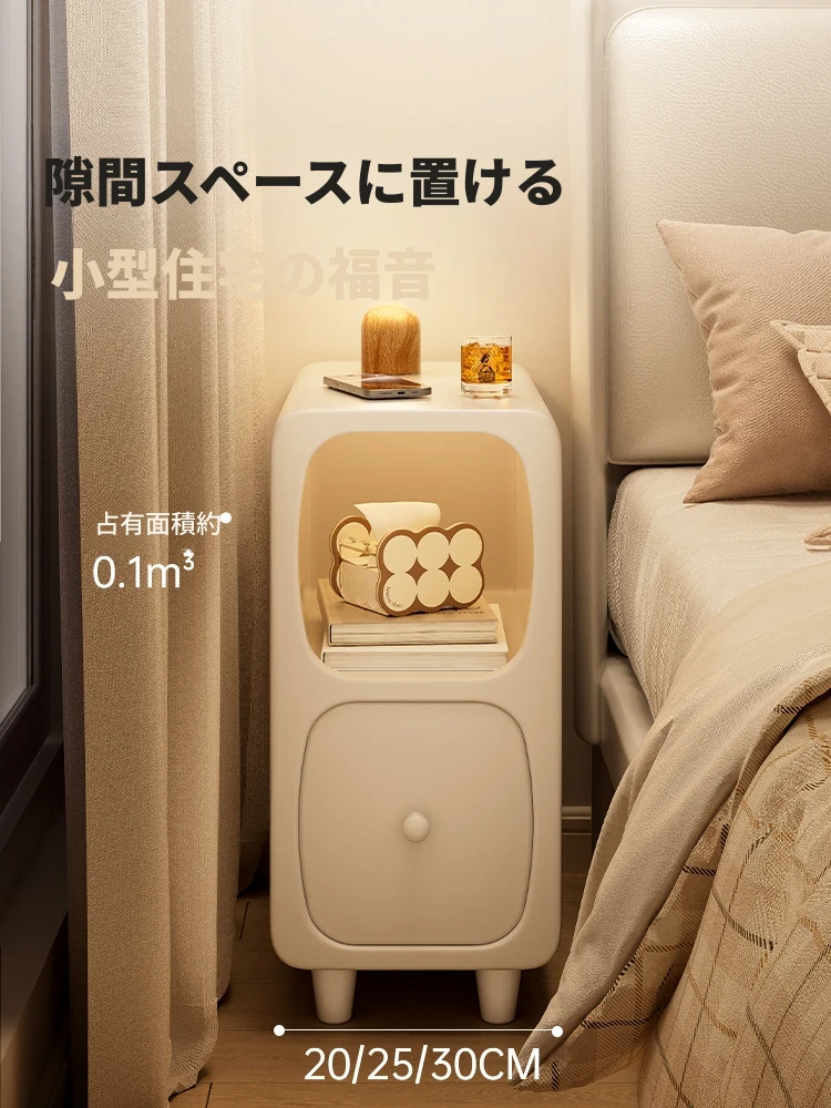 クリーム風ベッドサイドキャビネット|シンプルモダンなイタリアンデザイン|軽奢華スタイルのコンパクト30cm幅収納ラック|おしゃれな寝室にぴったり!