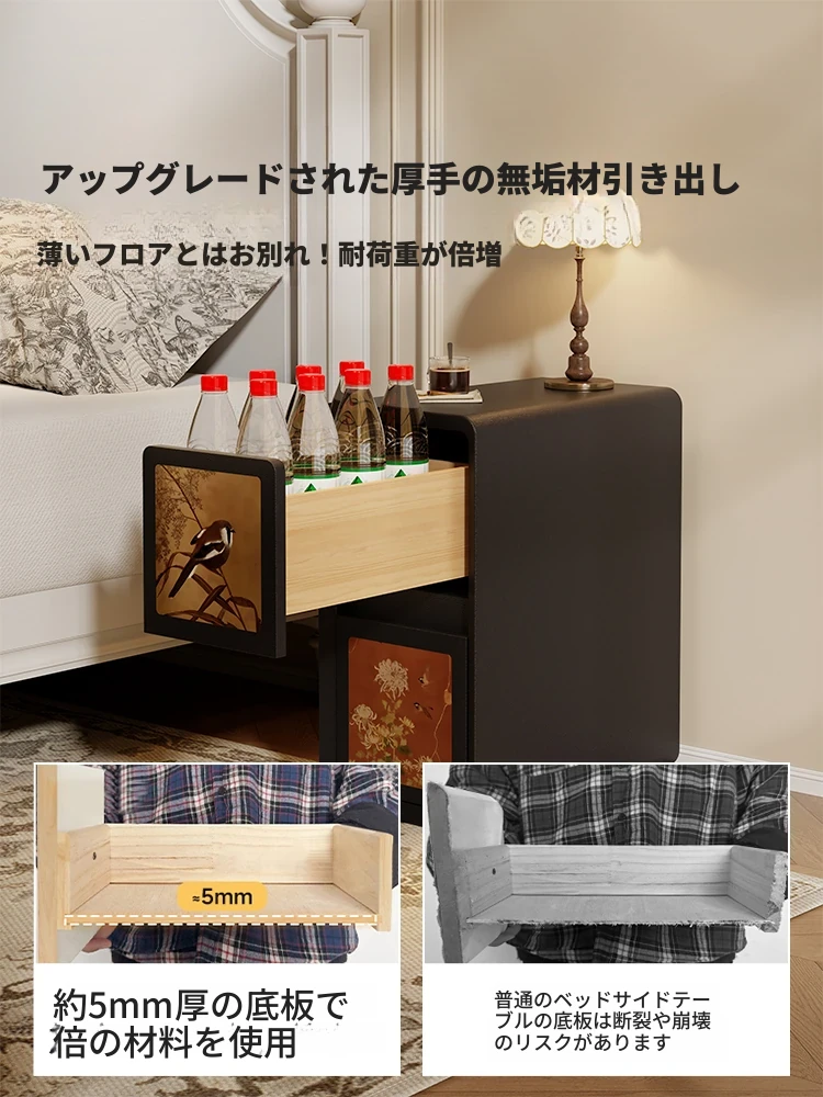 2025年新作!超スリムベッドサイドキャビネット - おしゃれな寝室にぴったりな収納力抜群のスペースセイバー!狭い隙間にもフィットするコンパクトデザインのベッド脇収納家具です。