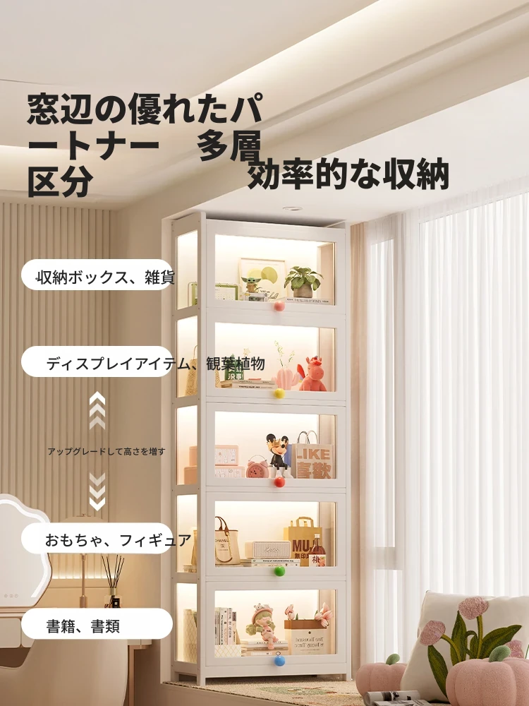 子供向けのスペースを取らない多層式本棚 - 実木製のスタイリッシュな収納キャビネット、絵本や学生用の書類もすっきり整理!地面に置ける便利なデザインで、お部屋をおしゃれに演出します。