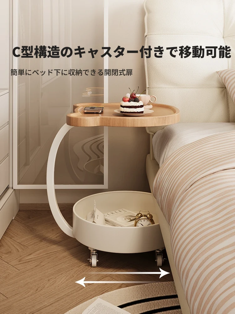 移動可能なベッドサイドキャビネット!おしゃれなクリーム風の収納ラックで、寝室にぴったり。小型のサイドテーブルとしても使え、便利な収納スペースでお部屋をスッキリ整えます。快適な生活空間を手に入れましょう!