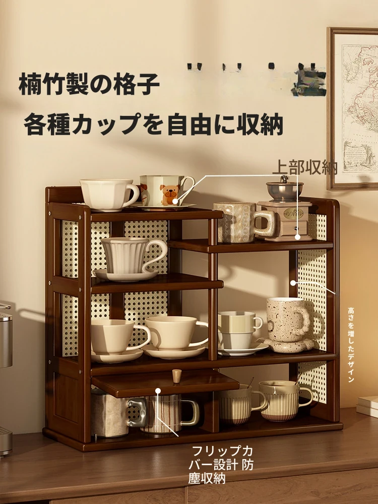 新中式デザインの茶具収納スタンド - おしゃれな卓上ティーカップラック、コンパクトなサイズで防塵効果抜群!お部屋をスッキリと整え、茶のひとときをより特別に演出します。