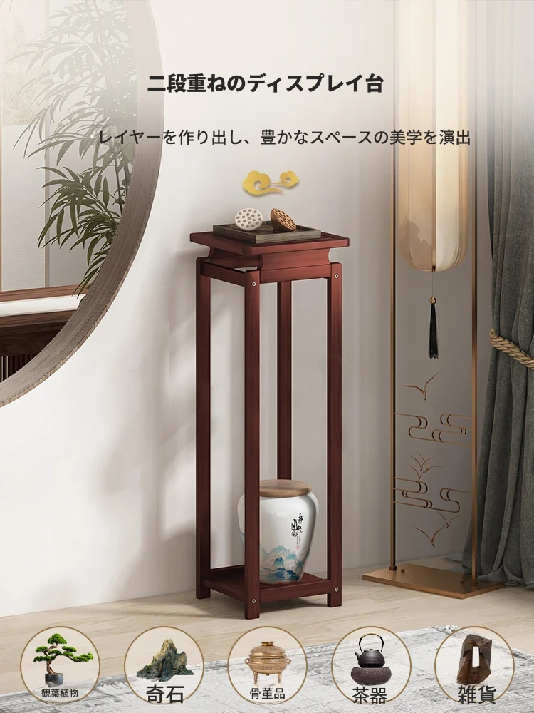 中式実木製アンティーク風フラワースタンド - リビングルームやティールームにぴったりの落地式ディスプレイラック、小物の魅力を引き立てるおしゃれなアイテム!