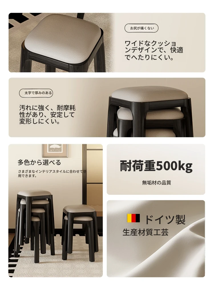 モダンでシンプルなデザインの家庭用椅子!スタッキング可能で、厚みのあるクッション付きプラスチック製ソファスツール。リビングやダイニングにぴったりの便利な四角いスツール!