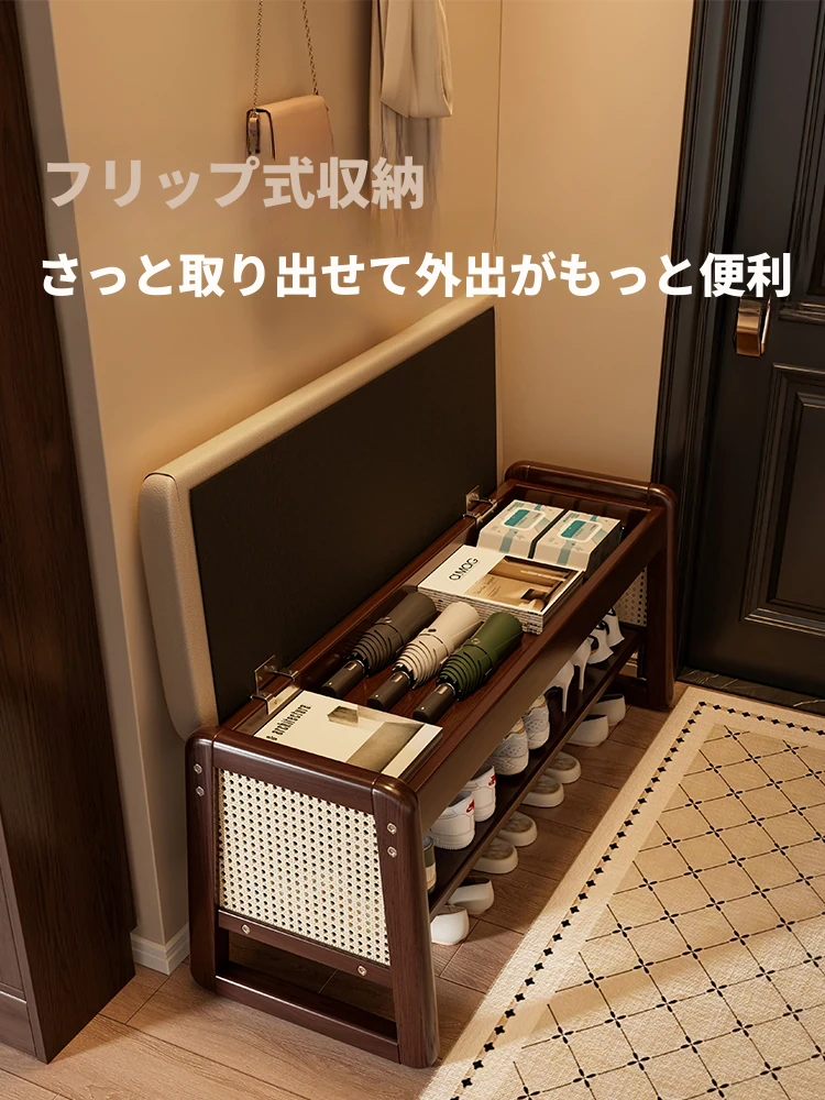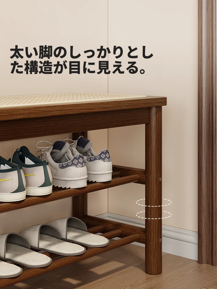 スリッパベンチ 藤編みの玄関ベンチ 幅広のロングシート 靴を履くための便利な収納ベンチ 家庭用の入口用シューズキャビネットにも最適!おしゃれで機能的なアイテムで、玄関をスッキリ整理整頓!