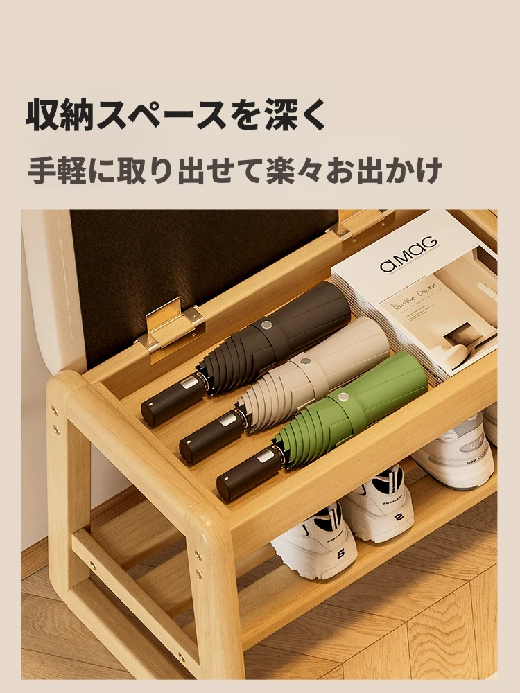 スリムなデザインの無垢材シューズベンチ - 玄関で使える収納付き靴箱!座るだけでなく、靴の整理も簡単。狭いスペースにもぴったりフィット!あなたの暮らしをもっと便利にしてくれるアイテムです。