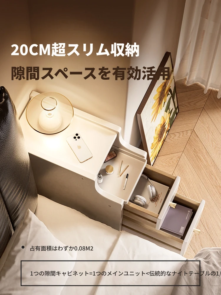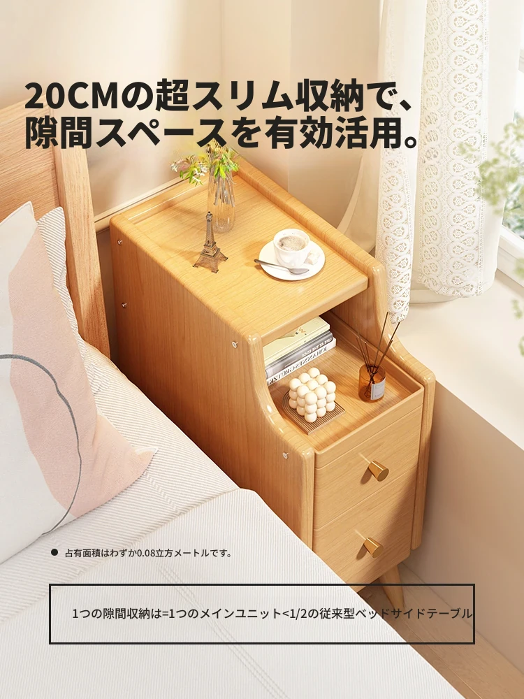 2025年最新!超スリムな天然木製ベッドサイドキャビネット - ミニマルデザインの小型収納、寝室にぴったりの隙間収納キャビネット!快適な生活空間を演出します。
