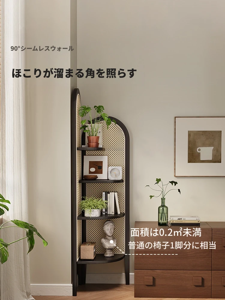 レトロな角棚!おしゃれな藤編みの三角形コーナーキャビネット、リビングにぴったりなスペース活用アイテム。洗練されたデザインで、お部屋をスタイリッシュに彩ります。