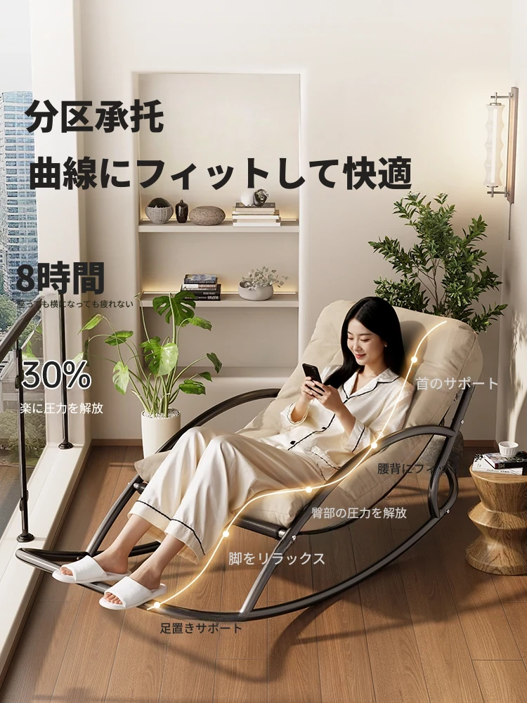 リラックスできる大人用ロッキングチェア!寝転びながらくつろげる陽台用の可愛い懶人椅子。人気のある一人用の倒れないデザインで、あなたの休息時間を特別なものにします!