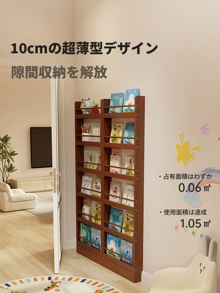 壁に寄せられる超薄デザインの絵本ラック!スペースを取らず、子供たちの本をすっきり収納。お部屋をおしゃれに演出する、後ろの扉の隙間にもぴったりのスタイリッシュな収納棚です。