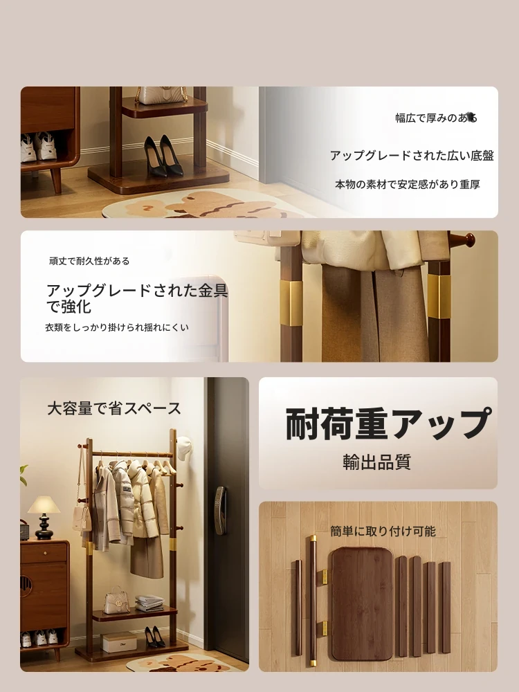 2023新作!高品質天然木製スタンド型コートハンガー - 寝室やオフィスに最適なコンパクトな収納ソリューション。おしゃれで実用的な衣類収納ラックで、あなたの空間をスッキリ整理!