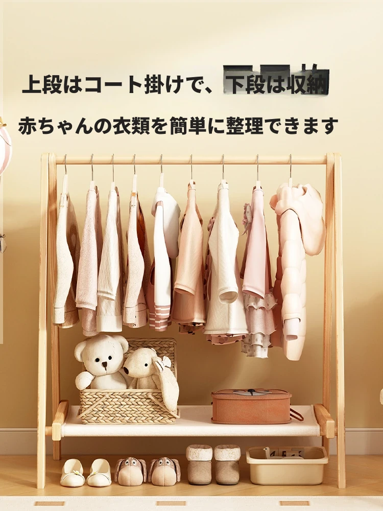 折りたたみ可能な天然木製キッズコートハンガー - 小スペースに最適なシンプルな収納ラック!お子様のお部屋をすっきり整理整頓。使わない時はコンパクトに収納できます!