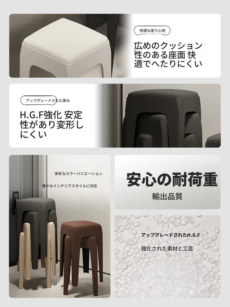 スタイリッシュで耐久性のあるプラスチック製スタッキングスツール - 家庭用、柔らかいパッド付き、贅沢感あふれる四角いデザイン、ダイニングテーブル用のサブスツールとして最適!