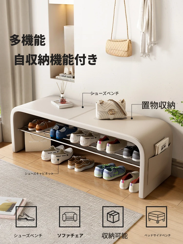 玄関で使えるシューズラック一体型ベンチ、寝室や入口に最適なスリムデザイン!高級感溢れるリビングのアクセントに。おしゃれな靴の脱ぎ履きが快適に楽しめます。