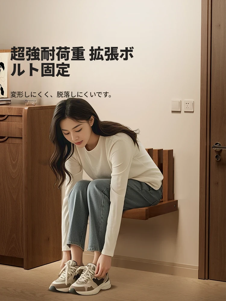 靴き脱ぎ用ベンチ - 家庭用玄関ソファ、実木製で壁に取り付け可能、折りたたみ式、省スペースのデザイン、快適に座れる靴置きベンチ!