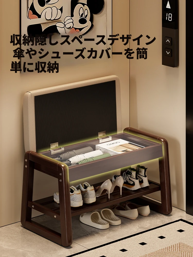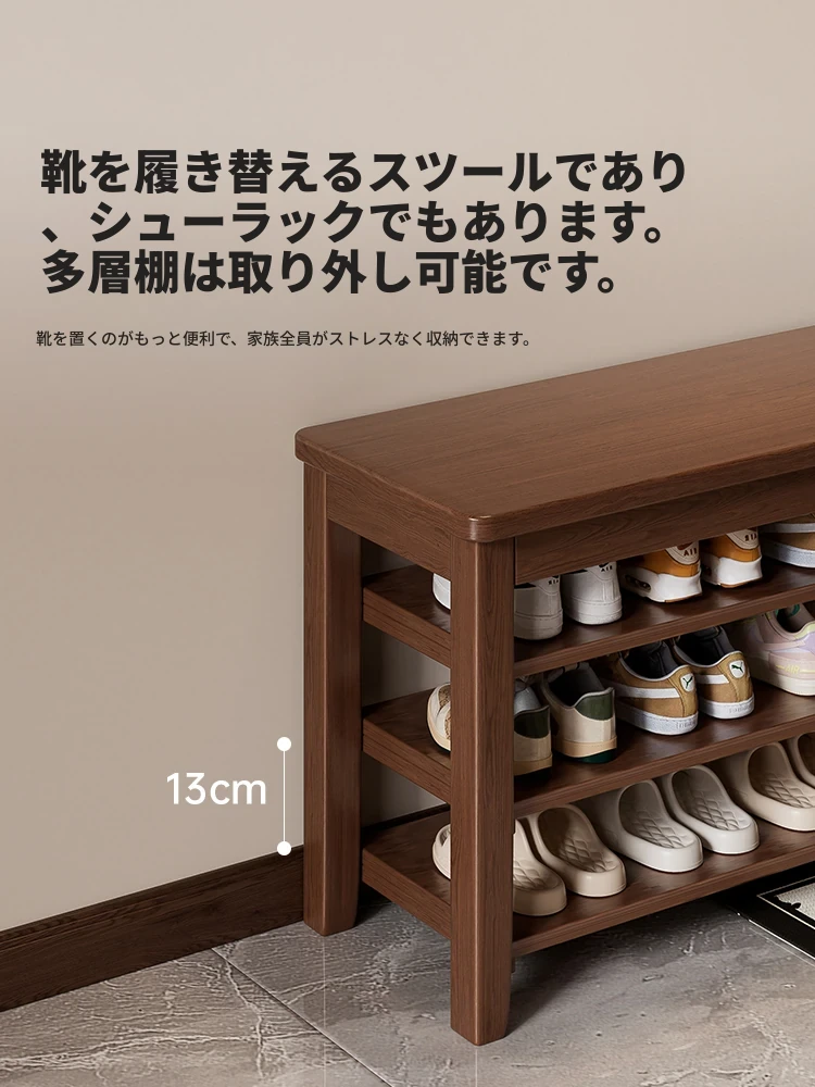 高級感あふれる無垢材の靴置きベンチ - 家庭用玄関にぴったり!座れる靴棚一体型で、スッキリとしたエントランスを演出。おしゃれで機能的なロングベンチで、日々の靴の脱ぎ履きが楽に。