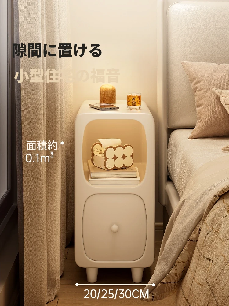 クリーム風の無垢材ベッドサイドキャビネット|家庭用・寝室に最適!2025年のトレンドアイテム!シンプルでモダンなホワイト収納キャビネット。おしゃれに暮らすための必需品!