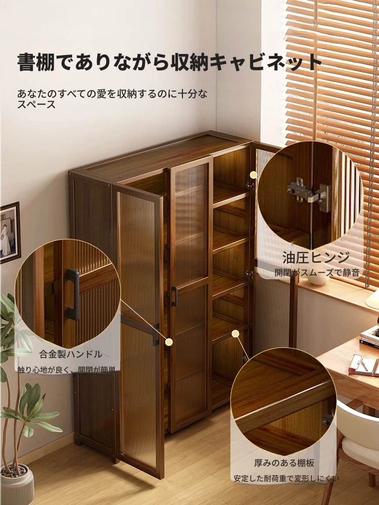 防塵デザインの一体型木製書棚!高くてスリムな壁面収納キャビネット、リビングに最適なスタイリッシュな収納力。あなたの本や小物を美しく整頓、空間を有効活用!