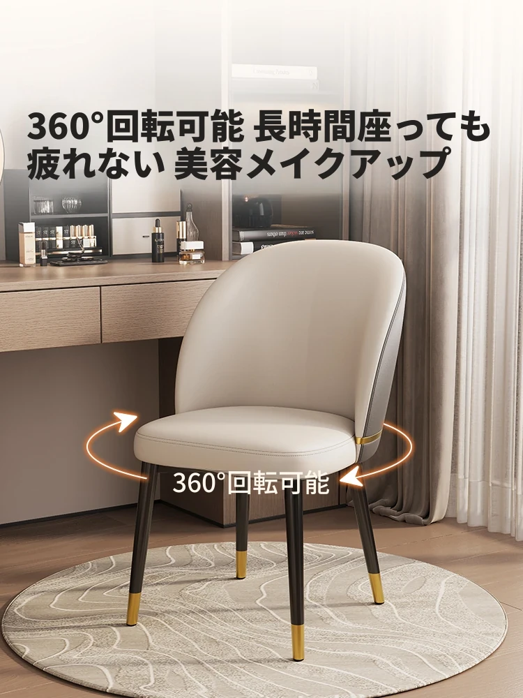 回転式メイクアップチェア|おしゃれな女性のためのリビングや寝室にぴったりな軽奢スタイルのドレッサー椅子|ネイルサロンやデスクにも最適な背もたれ付きの快適な椅子!